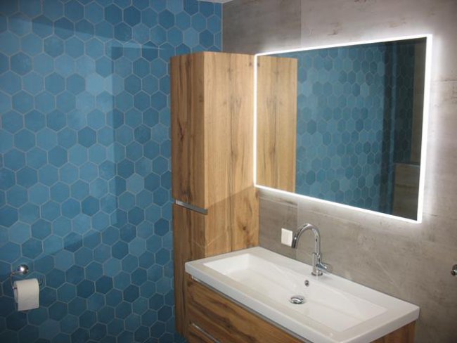 Bij Sanitair & Tegel Expo zijn we trots op het eindresultaat dat we samen met onze klanten realiseren. Op deze pagina zie je een gerealiseerde badkamer, compleet geleverd en geplaatst door ons team. Laat je inspireren door de foto’s en ontdek wat wij ook voor jou kunnen betekenen.